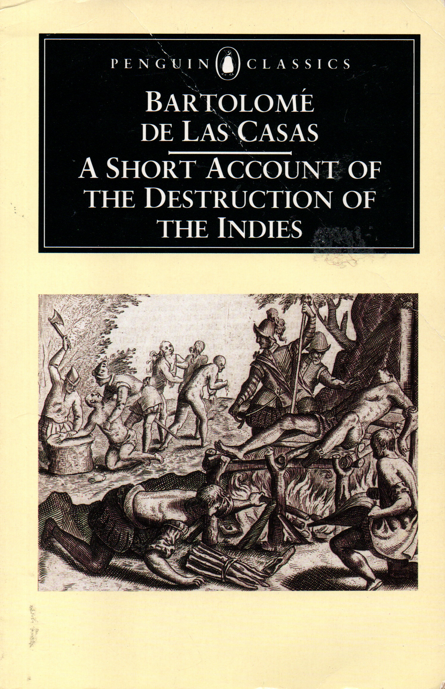 “In 1542, after years of witnessing Indian suffering and slavery – and the failure of his own attempts to create a humane settlement – Las Casas wrote A Short Account of the Destruction of the Indies. A work of great passion and documentary vividness, it embodies his belief that the early evangelizing vision of Christopher Columbus (whose diaries he preserved and edited) was corrupte by later conquistadores into a genocidal colonization. Like a distant forefather of the Enlightenment, he argues that the Indians should be regarded as human, and entitled to the basic rights of mankind.”