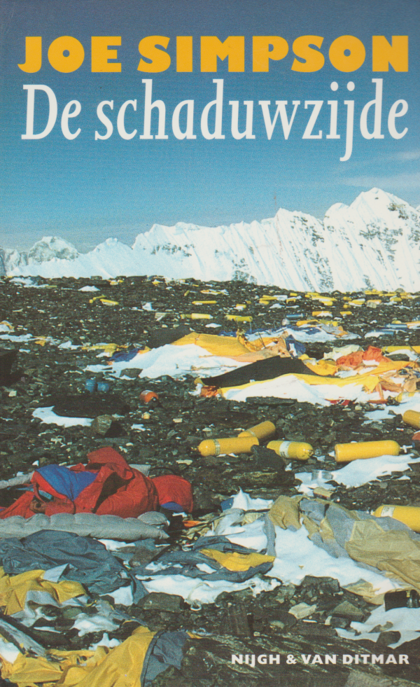 In De schaduwzijde stelt Joe Simpson de verwording van de klimsport aan de kaak. Niet langer is de Himalaya het exclusieve domein van uiterst ervaren alpinisten. Wie over genoeg dollars beschikt, kan zich via vaste touwen en met behulpzame Sherpa’s een weg naar de top banen.