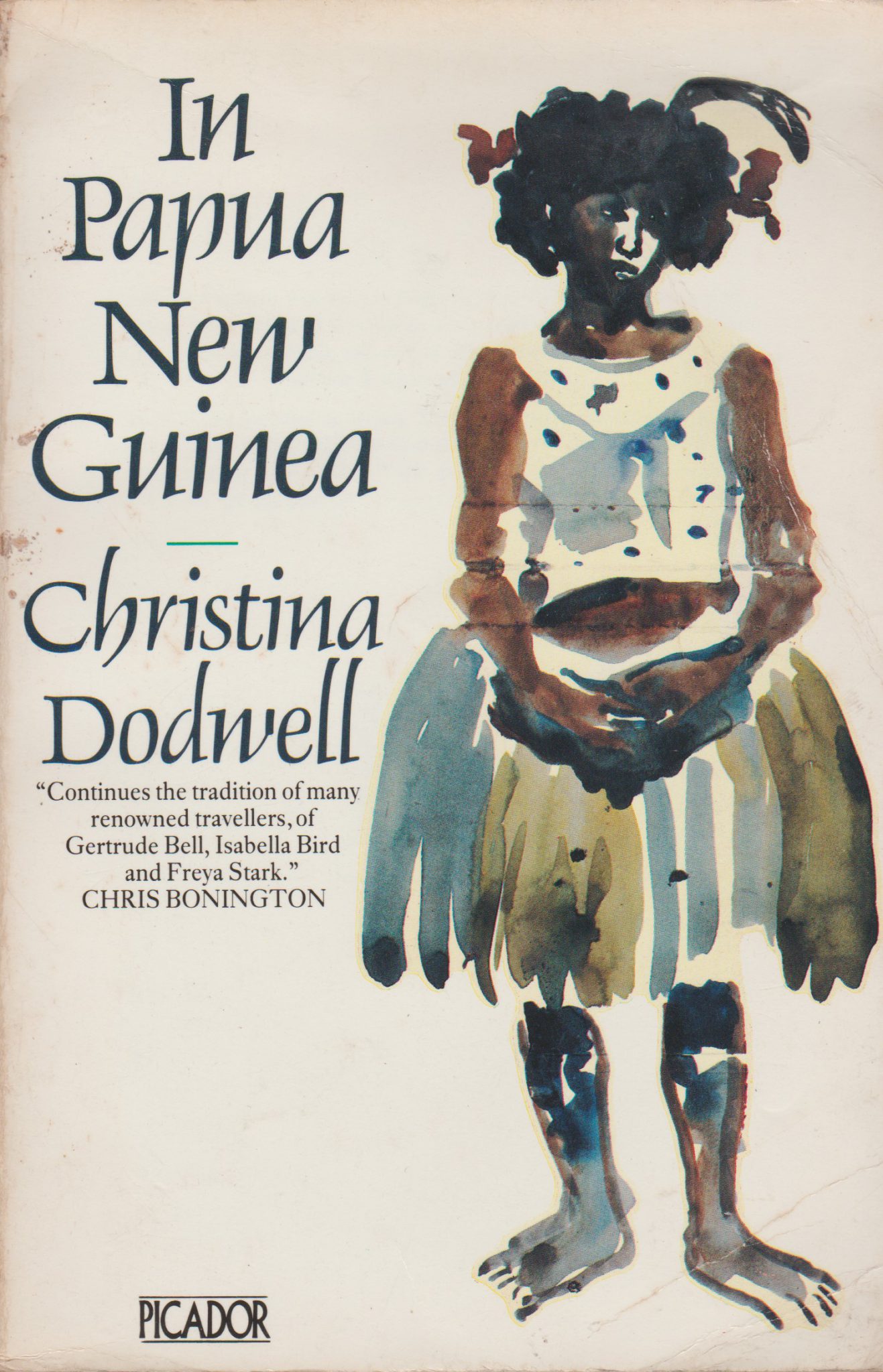 “… This is the story of Christina Dodwell, a woman whose ‘restless and sometimes reckless nature’ compelled her to set off on a one-person journey through the jungles and highlands of Papua New Guinea. Her expedition lasted two years and took her from one end of its unwelcoming terrain to the other. She met and stayed with primitive tribes, learning their customs and taking part in their rituals and celebrations, she trekked 1000 miles on horse back and spent four months paddling a dugout canoe down the Sepik River. She appeared in the tribesmen as no white woman they had ever seen and so they treated her as an honorary man. She became a legend to the people of Papua New Guinea, and her journeys remain as a part of its history.”