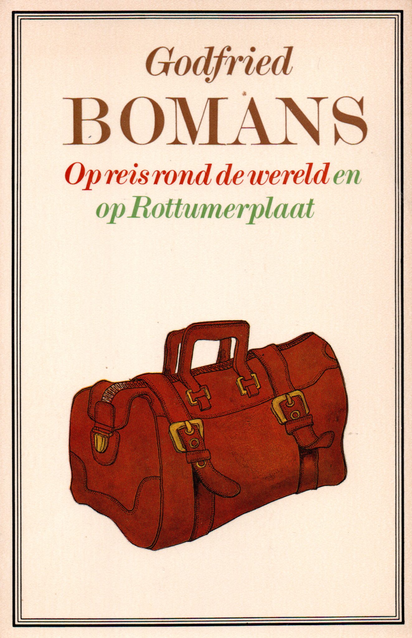Deze verzamelbundel, door hem in het najaar van 1971 ontworpen, is samengesteld: uit een interview, door Michel van der Plas afgenomen, bij de terugkeer van Godfried Bomans van een reis om de wereld, tijdens welke hij met een Nederlandse televisieploeg alle landen bezocht waar Nederlanders in den vreemde leven; uit zijn belevenissen in Engeland in 1970 bij de herdenking van Dickens’ honderdste sterfdag; en ten slotte uit het dagboek van zijn verblijf op het onbewoonde waddeneiland Rottumerplaat, van 10 tot 17 juli 1971.
