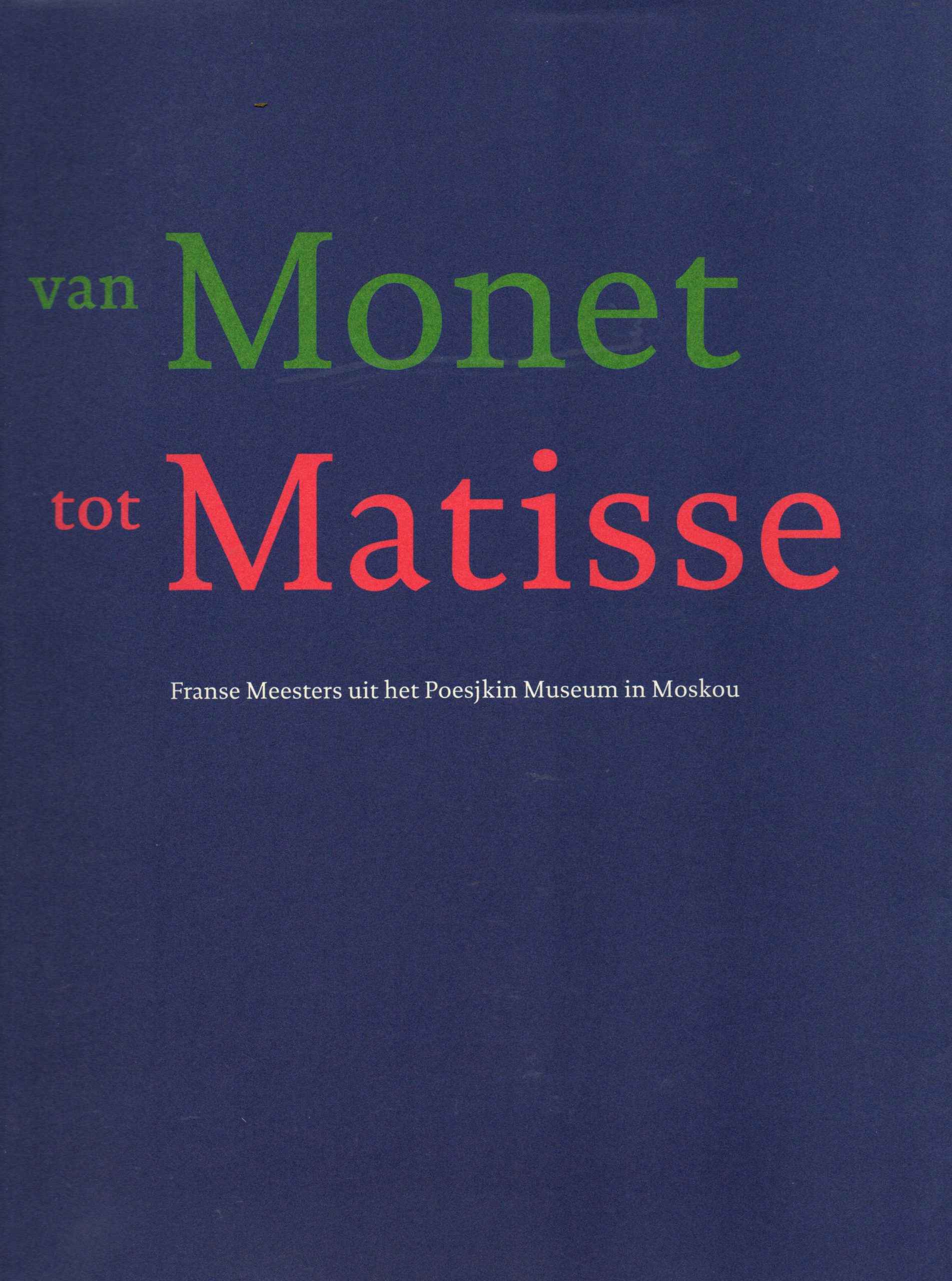 Catalogus bij de tentoonstelling ‘Van Monet tot Matisse, Franse Meesters uit het Poesjkin Museum in Moskou’ 13 juli tot 13 oktober 1996, Haags Gemeentemuseum, Den Haag